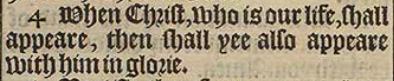 4 When Christ, who is our life, shall appeare, then shall yee also appeare with him in glorie.