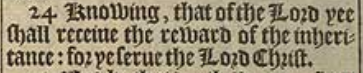 24 Knowing, that of the Lord yee shall receiue the reward of the inheritance: for ye serue the Lord Christ.