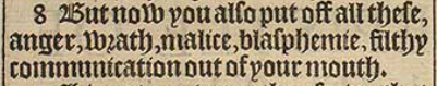 8 But now you also put off all these, anger, wrath, malice, blasphemie, filthy communication out of your mouth.