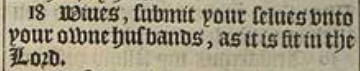 18 Wiues, submit your selues vnto your owne husbands, as it is fit in the Lord.