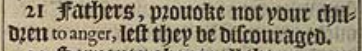 21 Fathers, prouoke not your children to anger, lest they be discouraged.