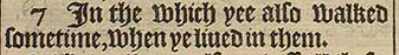 7 In the which yee also walked sometime, when ye liued in them.
