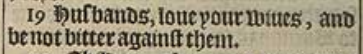 19 Husbands, loue your wiues, and be not bitter against them.