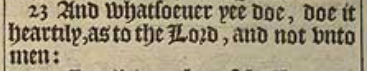 23 And whatsoeuer yee doe, doe it heartily, as to the Lord, and not vnto men: