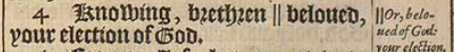 4 Knowing, brethren || beloued, your election of God.[||Or, beloued of God: your election.]