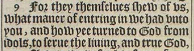 9 For they themselues shew of vs, what maner of entring in we had vnto you, and how yee turned to God from idols, to serue the liuing, and true God,