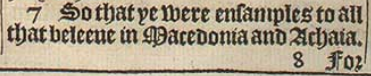 7 So that ye were ensamples to all that beleeue in Macedonia and Achaia.