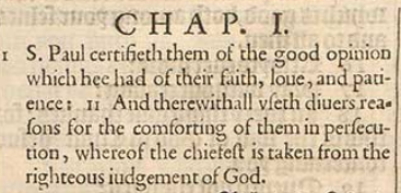1 S. Paul certifieth them of the good opinion which hee had of their faith, loue, and patience: 11 And therewithall vseth diuers reasons for the comforting of them in persecution, whereof the chiefest is taken from the righteous iudgement of God.