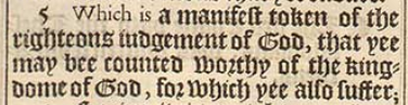 5 Which is a manifest token of the righteous iudgement of God, that yee may bee counted worthy of the kingdome of God, for which yee also suffer;