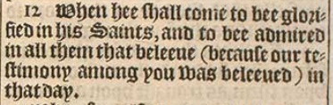 10 When hee shall come to bee glorified in his Saints, and to bee admired in all them that beleeue (because our testimony among you was beleeued) in that day.