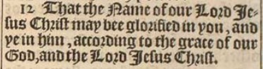12 That the Name of our Lord Iesus Christ may bee glorified in you, and ye in him, according to the grace of our God, and the Lord Iesus Christ.