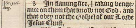 8 In flaming fire, || taking vengeance on them that know not God, and that obey not the Gospel of our Lorde Iesus Christ,[||Or, yeelding.]