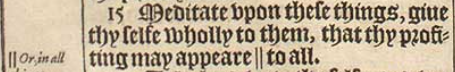 15 Meditate vpon these things, giue thy selfe wholly to them, that thy profiting may appeare || to all. [||Or, in all things.]