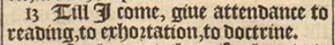 13 Till I come, giue attendance to reading, to exhortation, to doctrine.