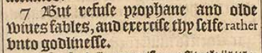 7 But refuse prophane and olde wiues fables, and exercise thy selfe rather vnto godlinesse.