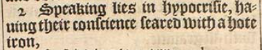 2 Speaking lies in hypocrisie, hauing their conscience seared with a hote iron,