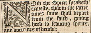 1 Now the Spirit speaketh expresly, that in the latter times some shall depart from the faith, giuing heed to seducing spirits, and doctrines of deuils: