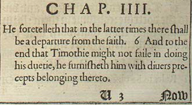 He foretelleth that in the latter times there shall be a departure from the faith. 6 And to the end that Timothie might not faile in doing his duetie, he furnisheth him with diuers precepts belonging thereto.