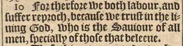 10 For therfore we both labour, and suffer reproch, because we trust in the liuing God, who is the Sauiour of all men, specially of those that beleeue.