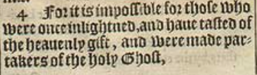 4 For it is impossible for those who were once inlightned, and haue tasted of the heauenly gift, and were made partakers of the holy Ghost,
