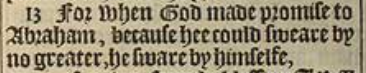 13 For when God made promise to Abraham, because hee could sweare by no greater, he sware by himselfe,