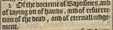 2 Of the doctrine of Baptismes, and of laying on of hands, and of resurrection of the dead, and of eternall iudgement.