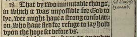 18 That by two immutable things, in which it was impossible for God to lye, wee might haue a strong consolation, who haue fled for refuge to lay hold vpon the hope set before vs.