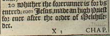 20 Whither the forerunner is for vs entrrd; euen Iesus, made an high Priest for euer after the order of Melchisedec.