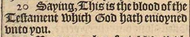 20 Saying, This is the blood of the Testament which God hath enioyned vnto you.