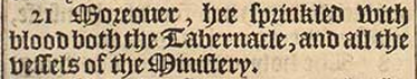 21 Moreouer, hee sprinkled with blood both the Tabernacle, and all the vessels of the Ministery.