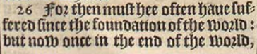 26 For then must hee often haue suffered since the foundation of the world: but now once in the end of the world, hath he appeared to put away sinne by the sacrifice of himselfe.