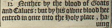 12 Neither by the blood of Goats and Calues: but by his owne blood hee entred in once into the Holy place, hauing obtained eternall redemption for vs.