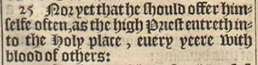 25 Nor yet that he should offer himselfe often, as the high Priest entreth into the Holy place, euery yeere with blood of others: