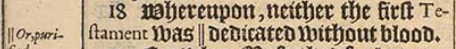 18 Whereupon, neither the first Testament was || dedicated without blood.[||Or, purified.]