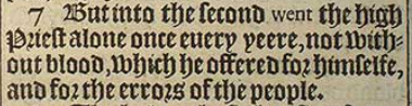 7 But into the second went the high Priest alone once euery yeere, not without blood, which he offered for himselfe, and for the errors of the people.