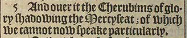 5 And ouer it the Cherubims of glory shadowing the Mercyseat; of which we cannot now speake particularly.