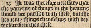 23 It was therefore necessary that the patterns of things in the heauens should bee purified with these, but the heauenly things themselues with better sacrifices then these.