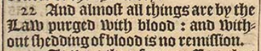 22 And almost all things are by the Law purged with blood: and without shedding of blood is no remission.