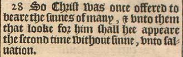 28 So Christ was once offered to beare the sinnes of many, & vnto them that looke for him shall hee appeare the second time without sinne, vnto saluation.