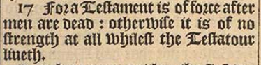 17 For a Testament is of force after men are dead: otherwise it is of no strength at all whilest the Testatour liueth.