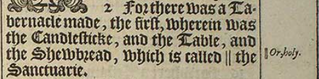 2 For there was a Tabernacle made, the first, wherein was the Candlesticke, and the Table, and the Shewbread, which is called ||the Sanctuarie.[||Or, holy.]