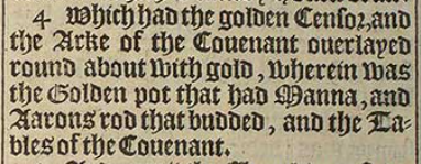 4 Which had the golden Censor, and the Arke of the Couenant ouerlayed round about with gold, wherein was the Golden pot that had Manna, and Aarons rod that budded, and the Tables of the Couenant.