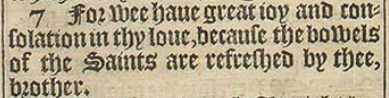 7 For wee haue great ioy and consolation in thy loue, because the bowels of the Saints are refreshed by thee, brother.