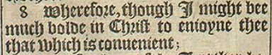 8 Wherefore, though I might bee much bolde in Christ to enioyne thee that which is conuenient;