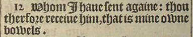12 Whom I haue sent againe: thou therfore receiue him, that is mine owne bowels.