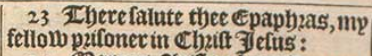 23 There salute thee Epaphras, my fellow prisoner in Christ Iesus: