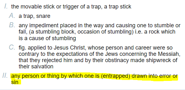 Im Griechischen ist das "skandalon " für "offence" und "skandalizō" für "offend".