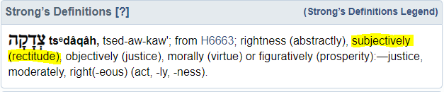 Im Hebräischen steht da “צְדָקָה” (ṣᵊḏāqâ). Das Strong’s dazu ist H6663: