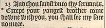 23 And thou saidst vnto thy seruants,* Except your yongest brother come downe with you, you shall see my face no more. [ *Chap. 43. 3. ]