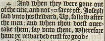 4 And when they were gone out of the citie, and not yet farre off, Ioseph said vnto his steward, Up, follow after the men; and when thou doest ouertake them, say vnto them, Wherefore haue ye rewarded euill for good?